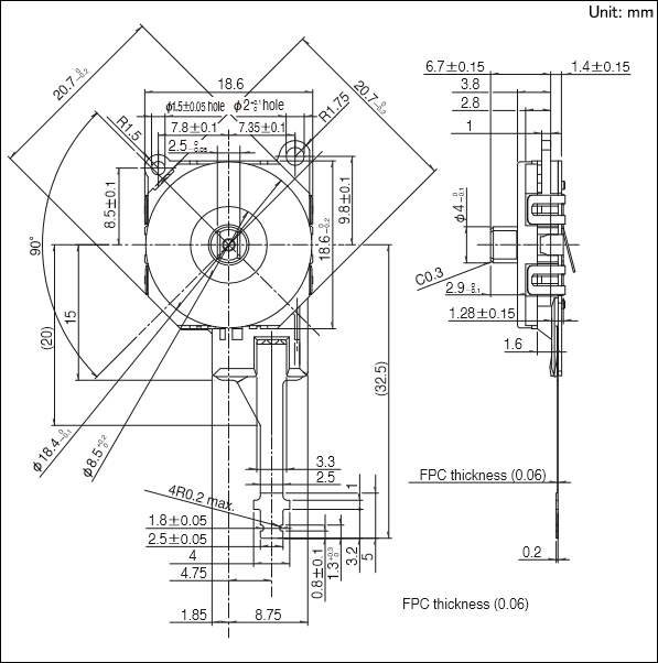 ALPS多功能操作裝置ThumbPointer™(薄型平面操縱桿控制器)RKJXU系列型號(hào):RKJXU1210006。