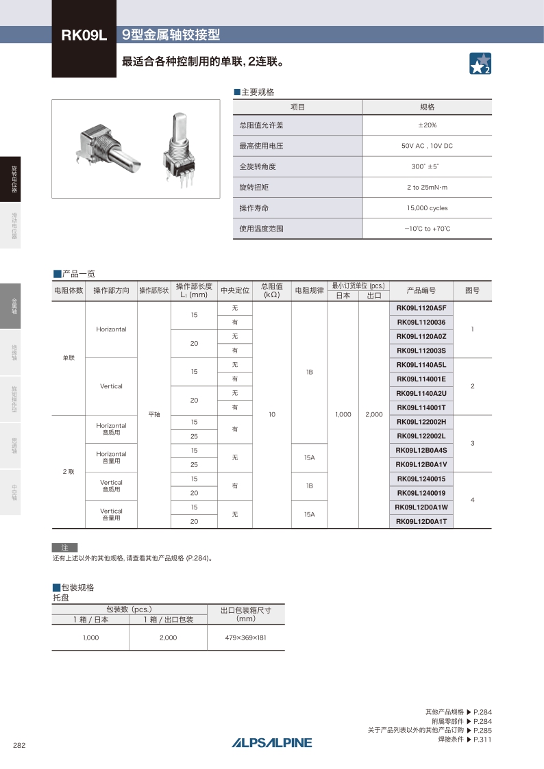 采購(gòu):RK09L系列——ALPS金屬軸電位器