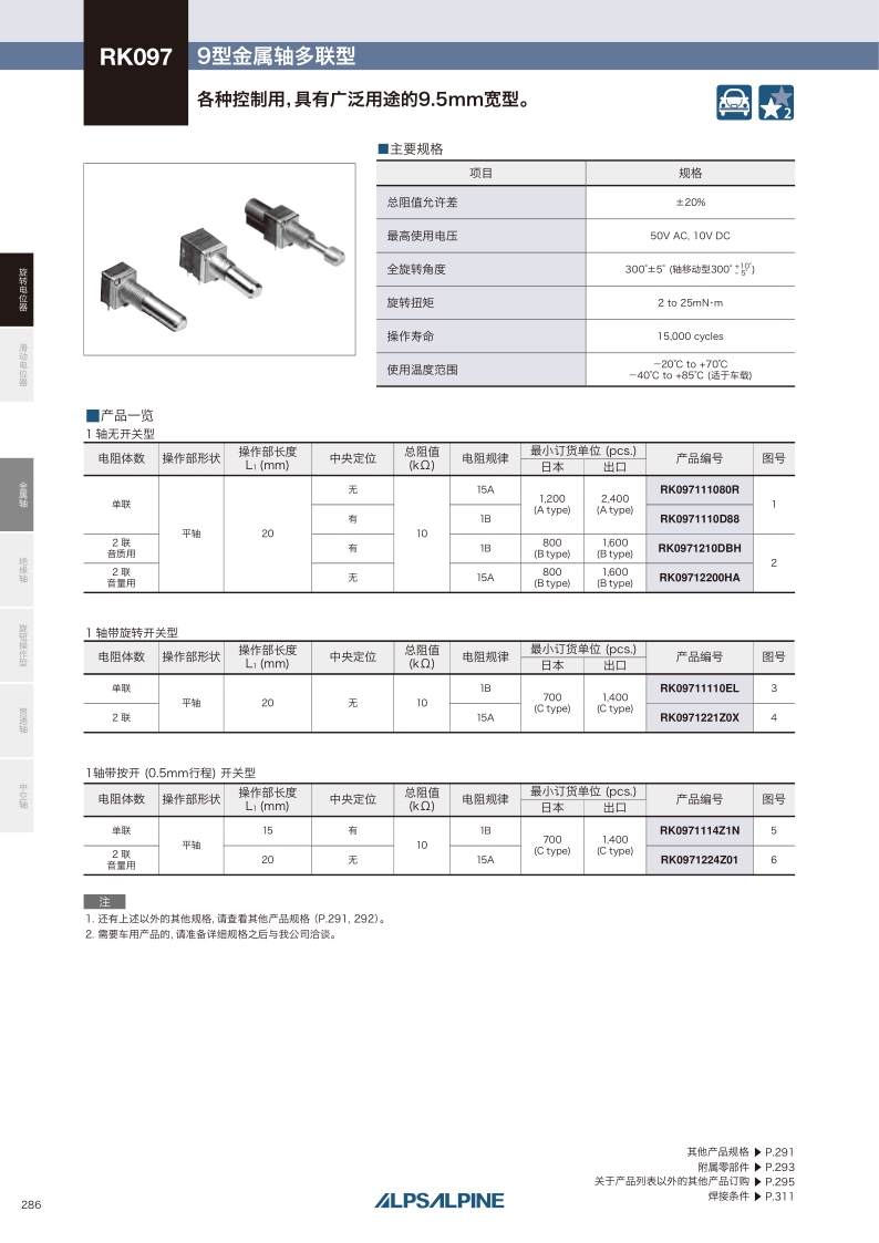RK097系列——ALPS金屬軸電位器
