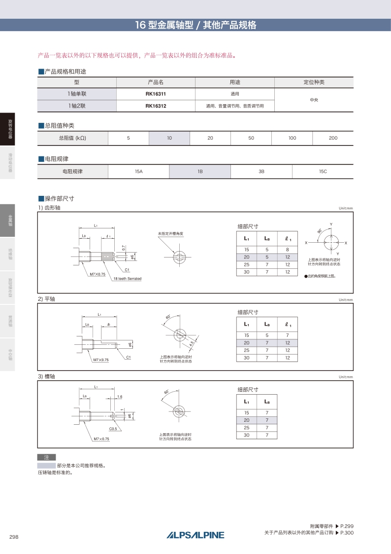產(chǎn)品編號(hào) 照片 操作軸數(shù) 電阻體數(shù) 操作部方向 軸受固定方法 操作部形狀 端子形狀 操作部長(zhǎng)度 定位 總阻值 電阻規(guī)律 尺寸