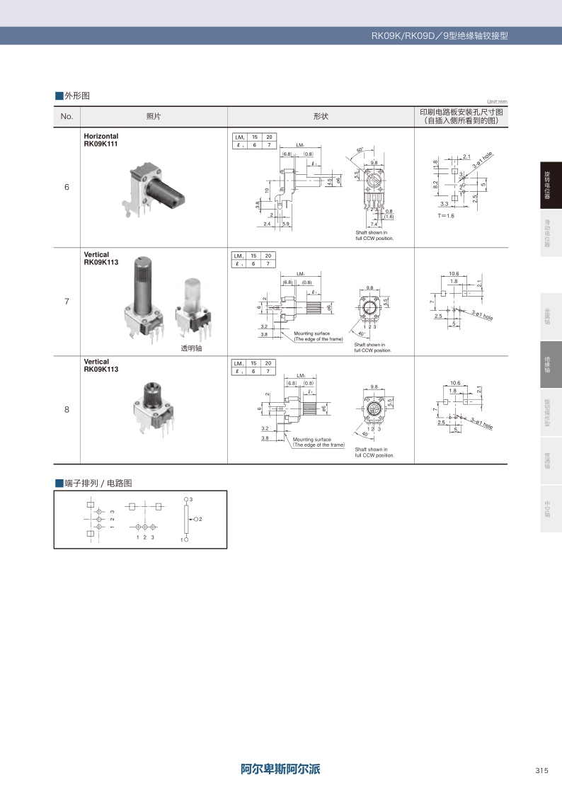 RK09K/RK09D系列——ALPS絕緣軸電位器