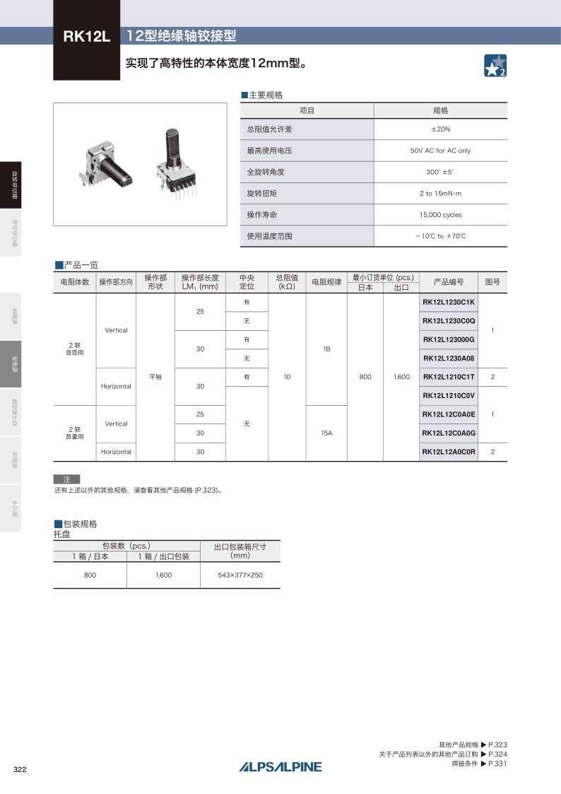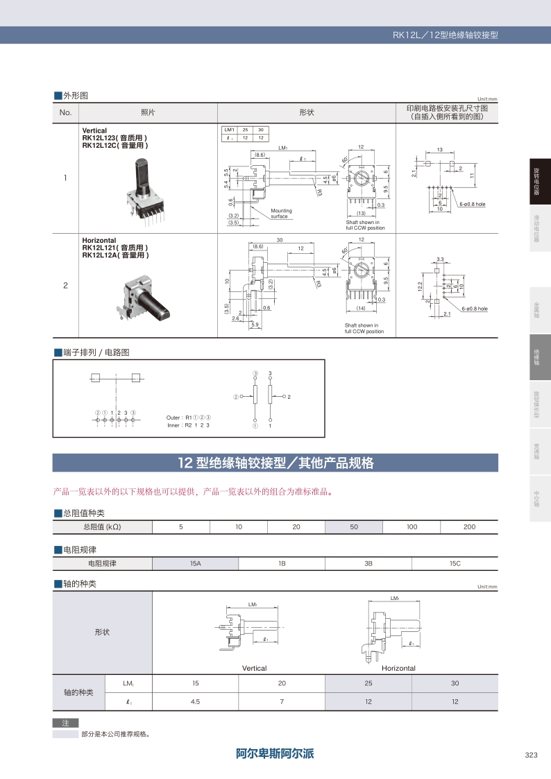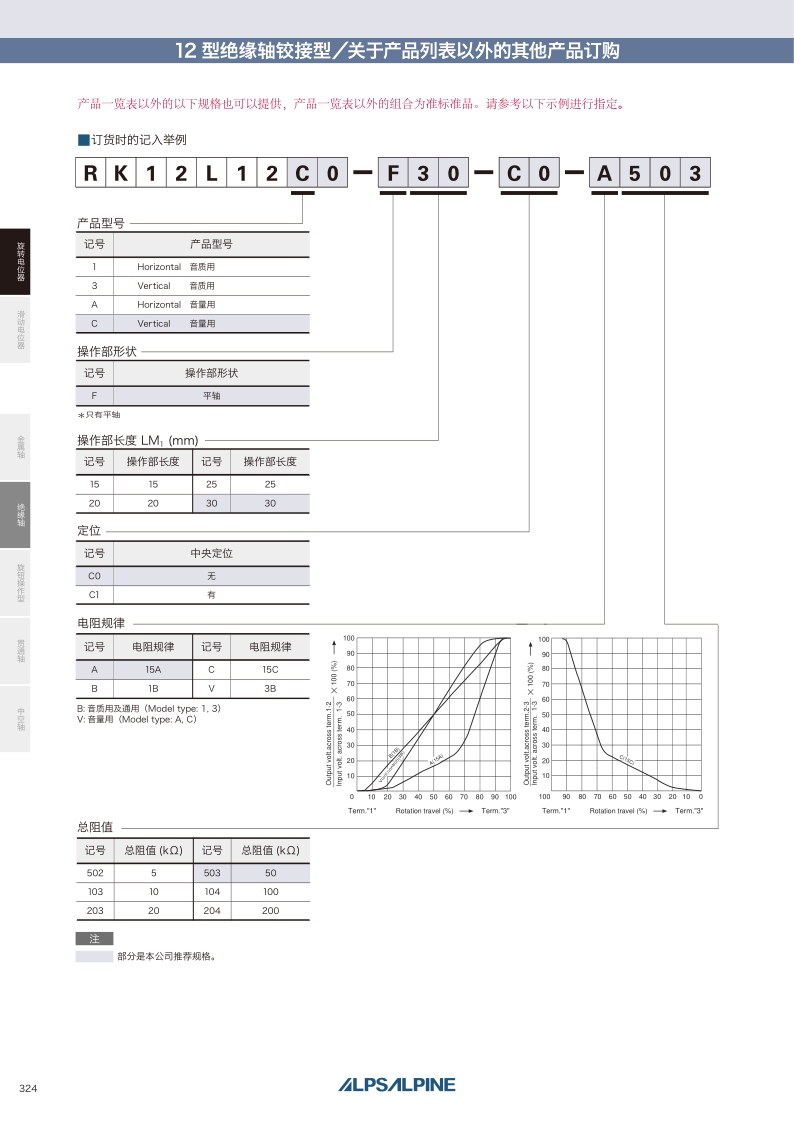 RK12L系列——ALPS絕緣軸電位器