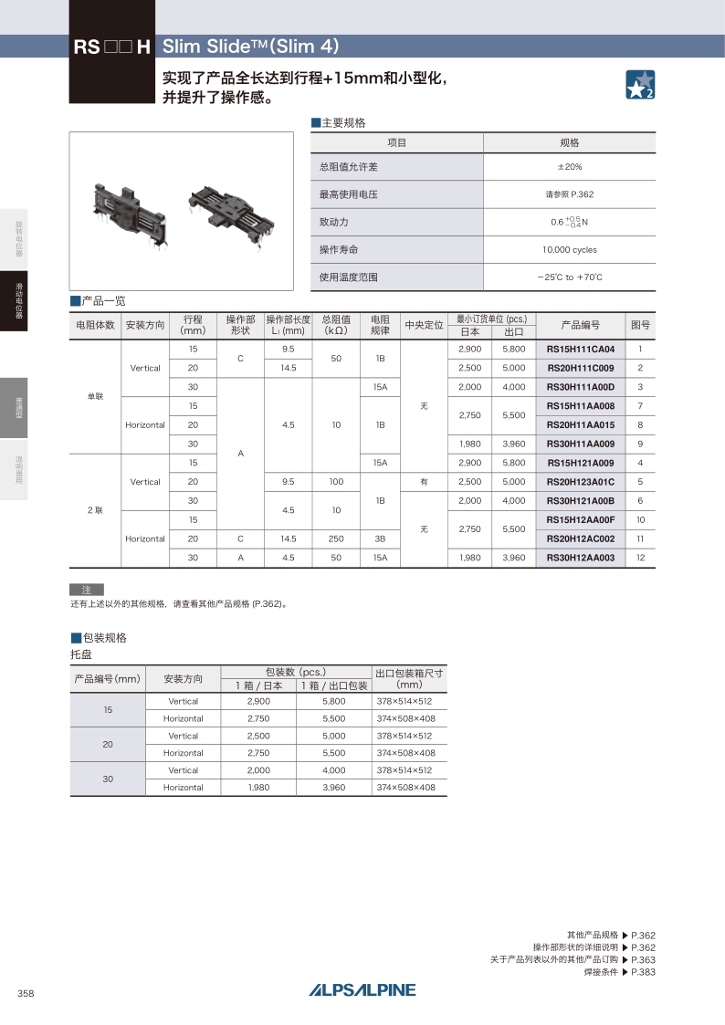 產(chǎn)品編號 照片 電阻體數(shù) 安裝方向 行程 操作部形狀 操作部長度 總阻值 電阻規(guī)律 定位 Tap